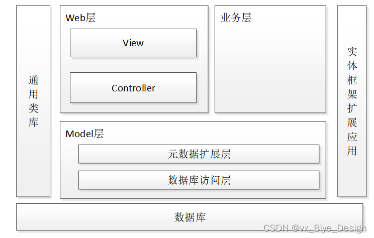 工商学院智慧校园系统小程序的架构设计主要分为可以3层,主要有Web层,业务层,Model层。其中web层还包括View层和Controller层,Model层包括元数据扩展层和数据访问层。