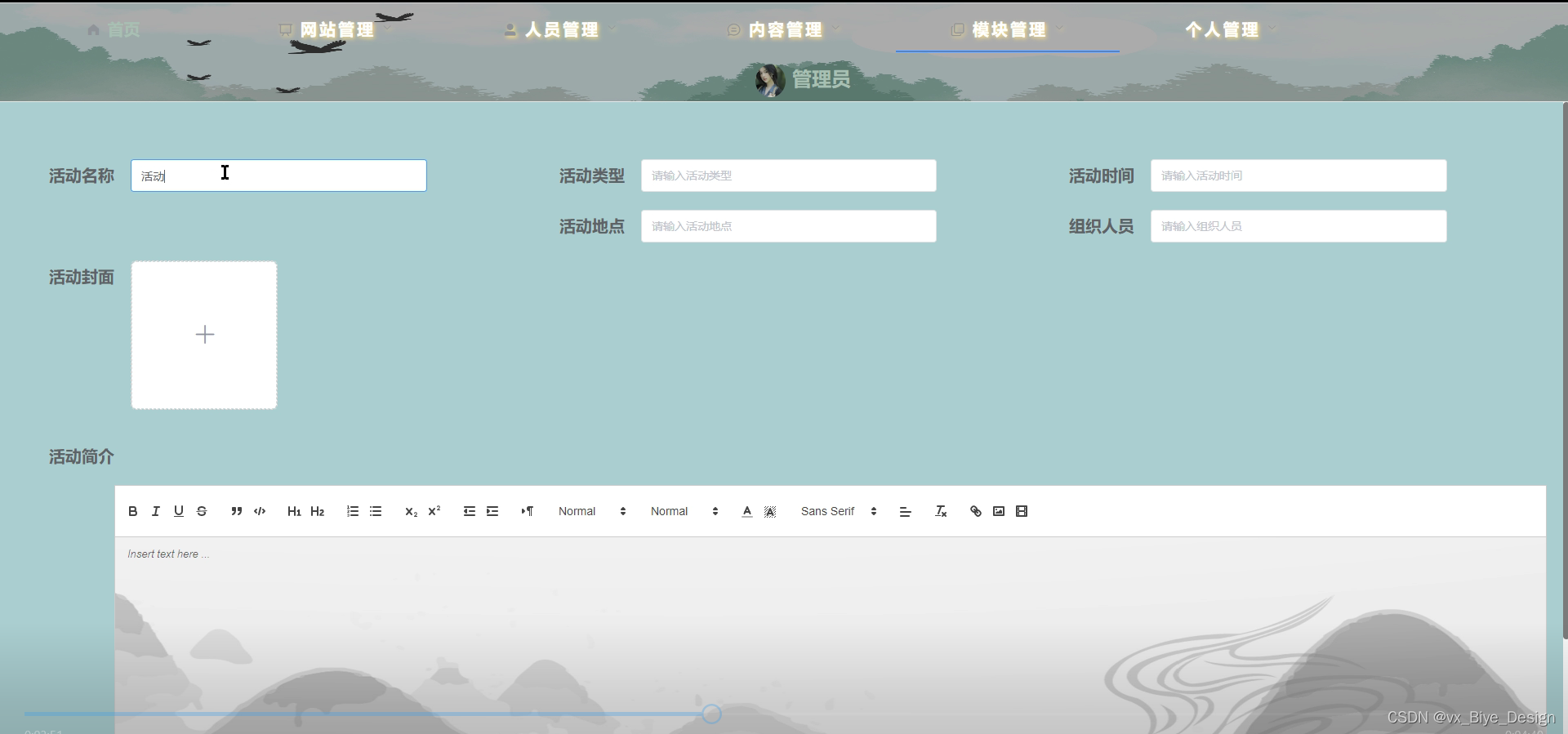 校园活动添加界面如下图所示。