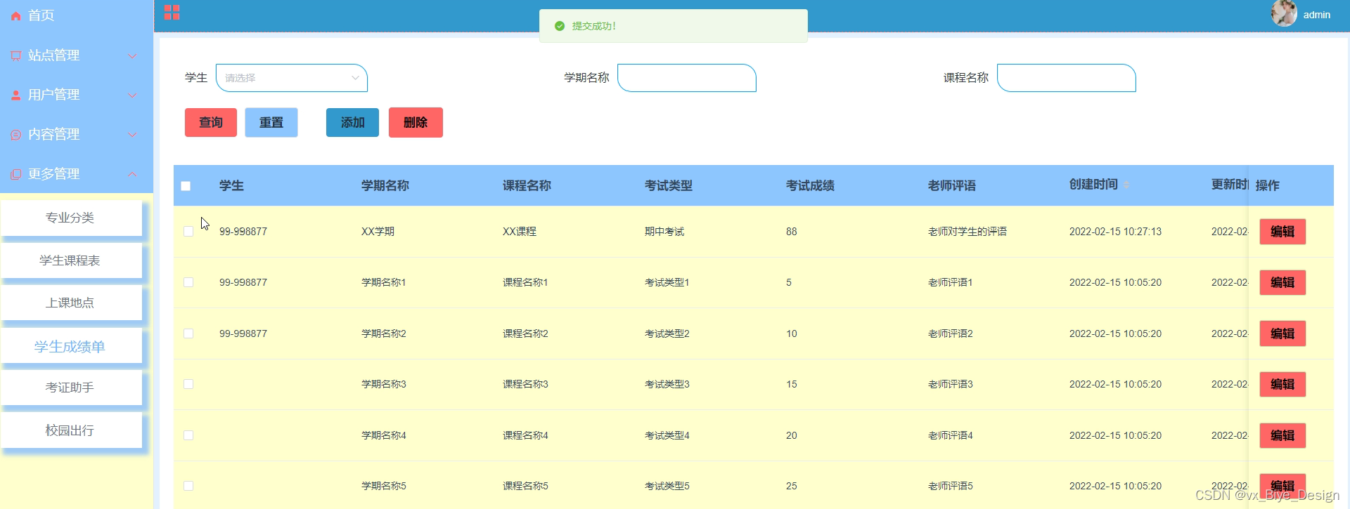 学生管理发表界面如下所示。