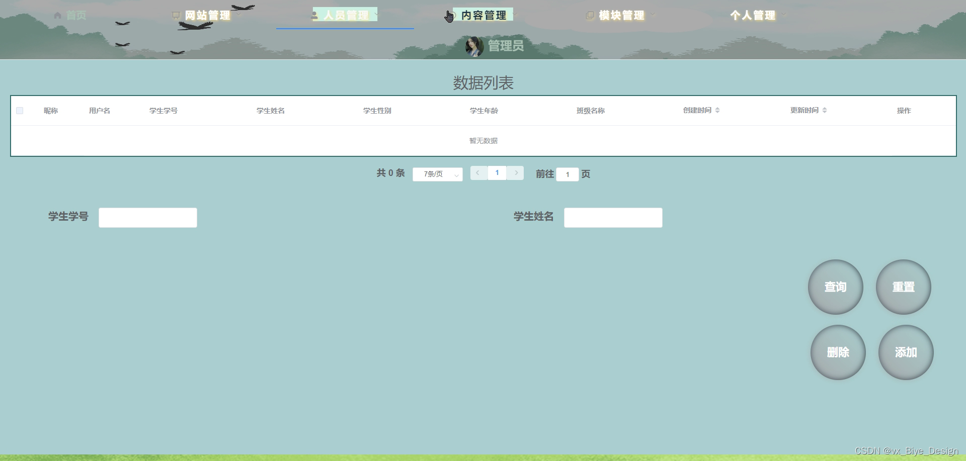 学生管理:可以查看注册学生的信息,并对其进行管理。