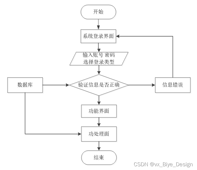 用户想进入系统,首先进入系统登录界面,通过正确的用户名、密码等信息,系统会检查登录信息,信息正确,然后输入相应的功能界面,提示信息错误,登录失败。系统操作流程如图3-4所示。