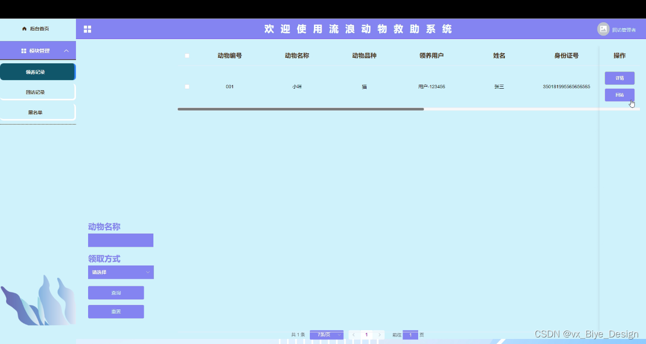 图5-14领养记录管理界面图