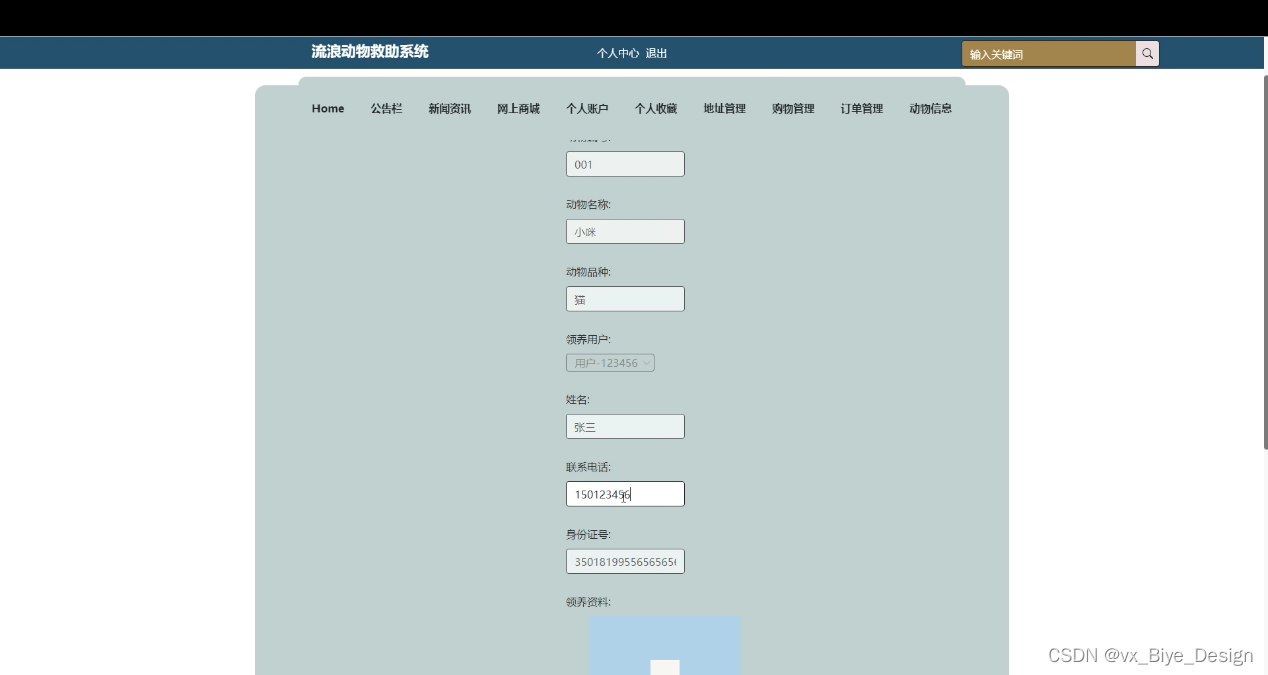 图5-6宠物领养申请提交界面图