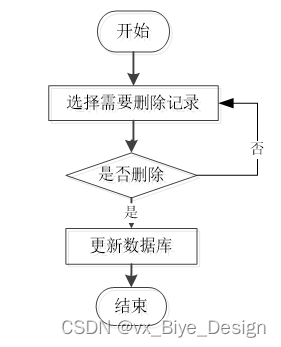 用户选择要删除的信息并单击Delete按钮。系统提示是否删除信息。如果用户想要删除信息,系统将删除信息。系统数据库删除信息。删除信息流程图如图3-5所示。