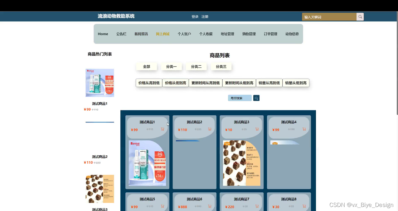 网上商城,用户可以查看推荐的宠物相关的商品列表,或者通过排序和筛选搜索感兴趣的宠物,如图5-4所示。