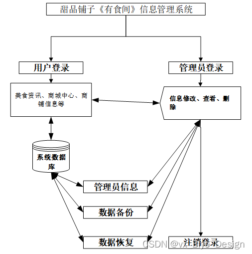 使用甜品铺子《有食间》信息管理系统的用户分管理员、普通用户两个角色的权限子模块。