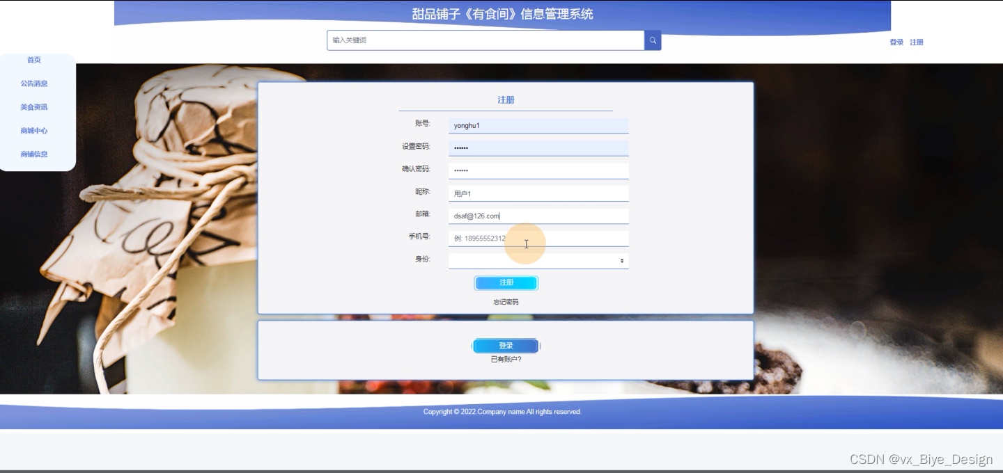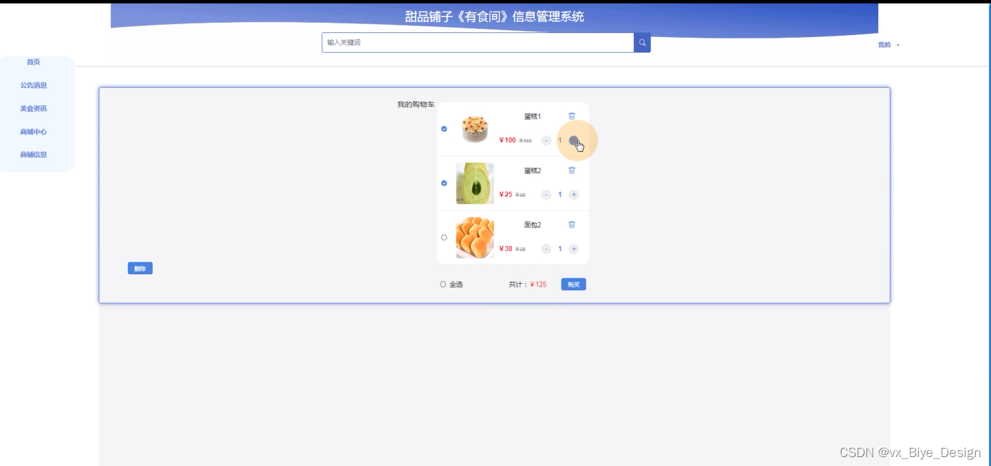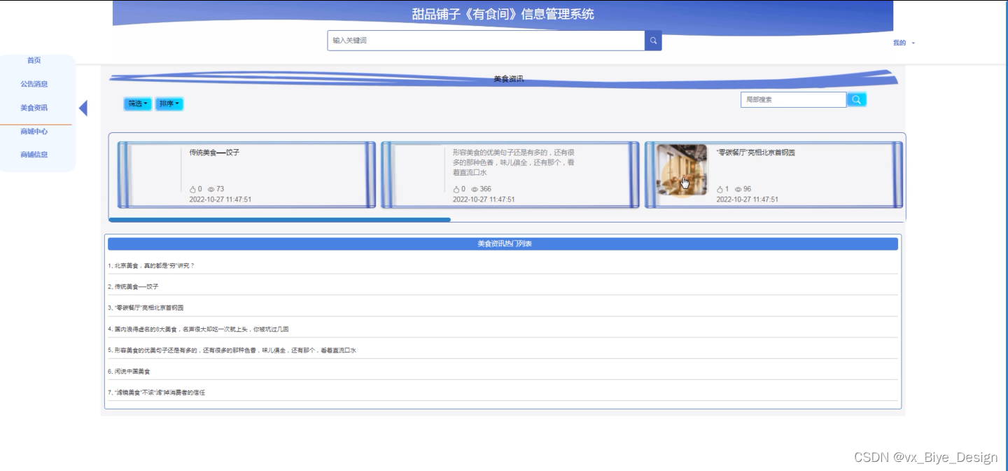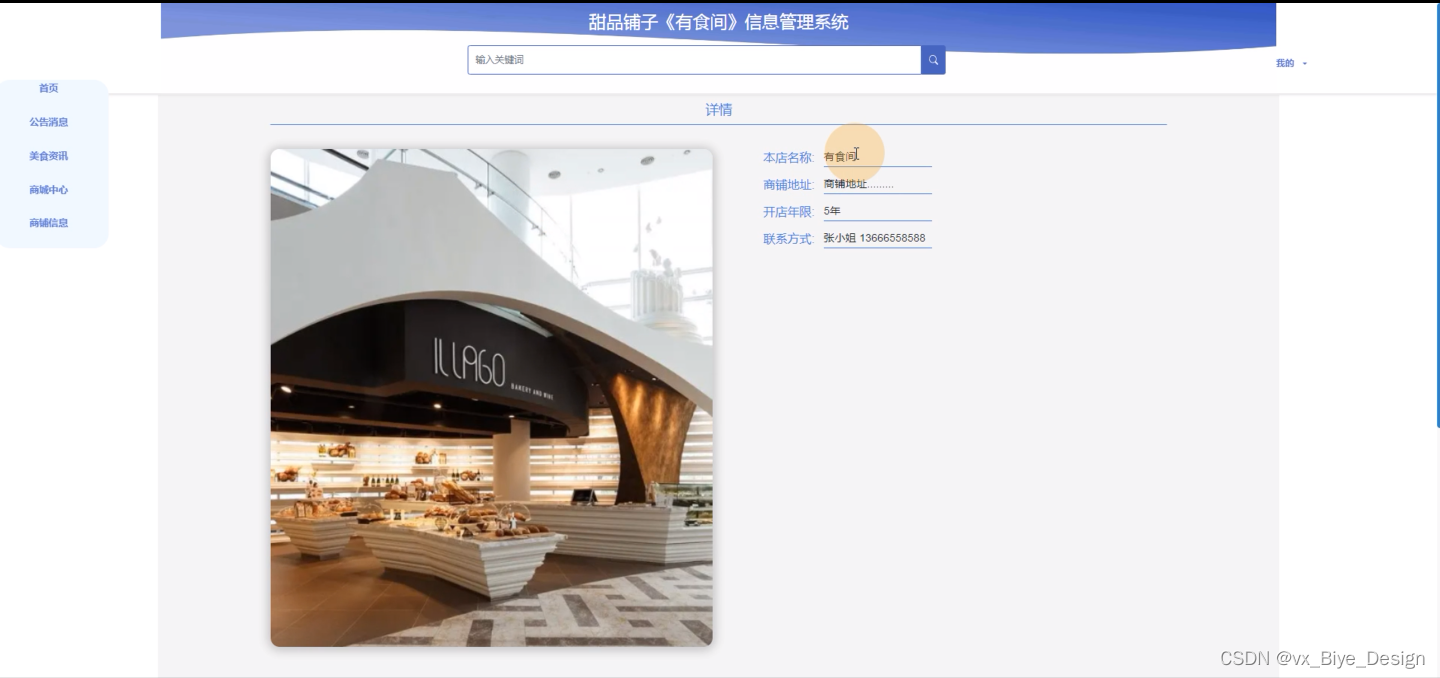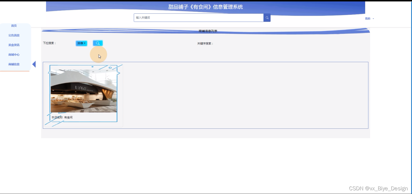 关键字:甜品铺子《有食间》信息管理系统,Mysql,Node.JS,Vue框架