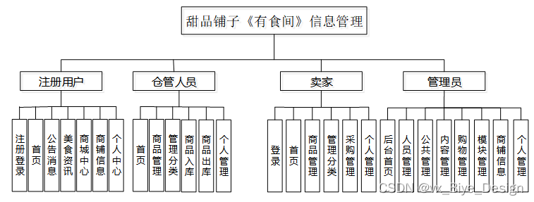 这些功能可以充分满甜品铺子《有食间》信息管理的需求。此系统功能较为全面如下图系统功能结构如图4-3所示。