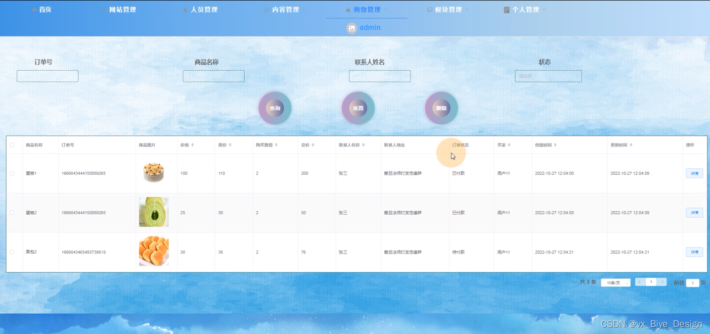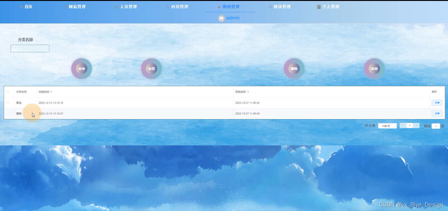 购物管理:管理员在此页面可以对商城中心+分类列表+订单列表这三个子菜单进行相应的操作管理;如图5-13,5-14所示。