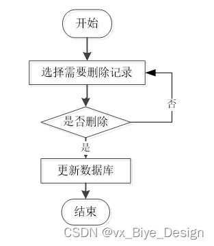 用户选择要删除的信息并单击Delete按钮。系统提示是否删除信息。如果用户想要删除信息,系统将删除信息。系统数据库删除信息。删除信息流程图如图3-5所示。