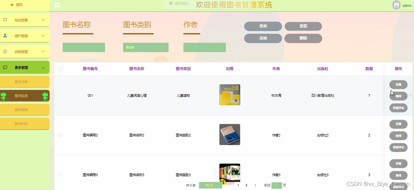 | 图书1 | A | 罗贯中 | 你好 | 添加成功 |
