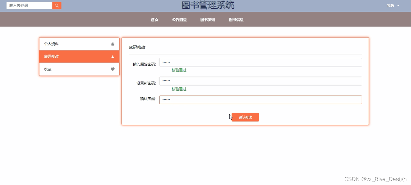 | 修改登录密码 | 修改新的密码 | 成功完成 |