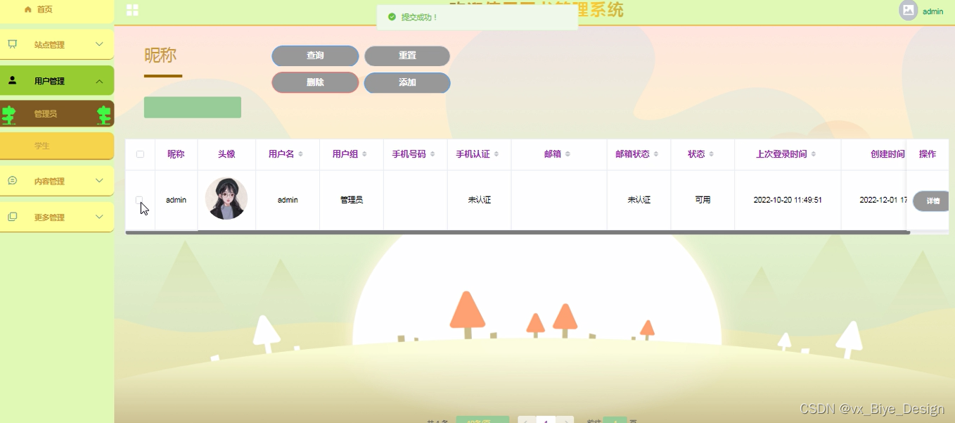 | 系统管理 (添加,修改,删除) | 输入正确信息 | 成功完成 |