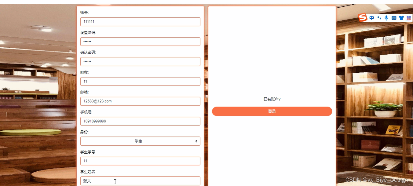 | 用户名 | 密码 | 确认密码 | 邮箱 | |
