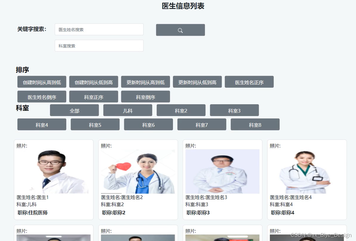 科室管理可以查看科室、创建时间、更新时间等信息,进行查询、重置、添加、删除、查看评论等操作。