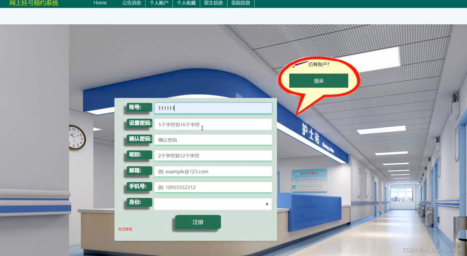第五章对网上挂号预约系统进行实现,并贴出相关页面截图,语言描述出具体功能实现的操作方法。