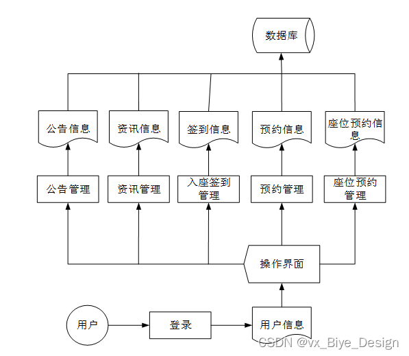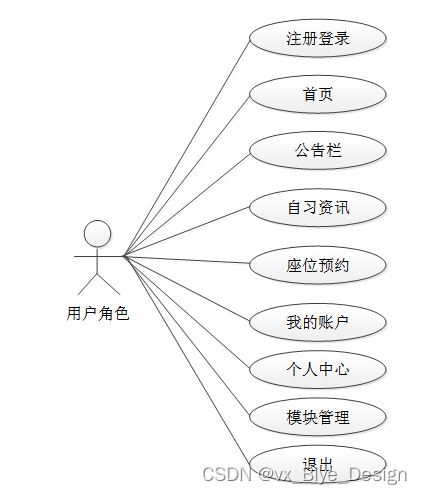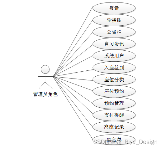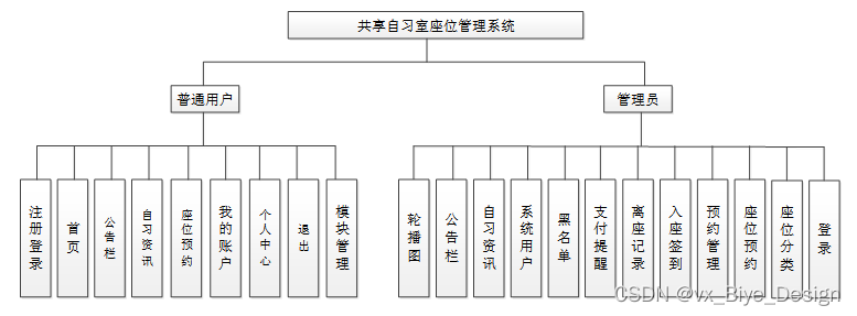 共享自习室座位管理系统从角色上划分为了管理员以及普通用户两种角色。