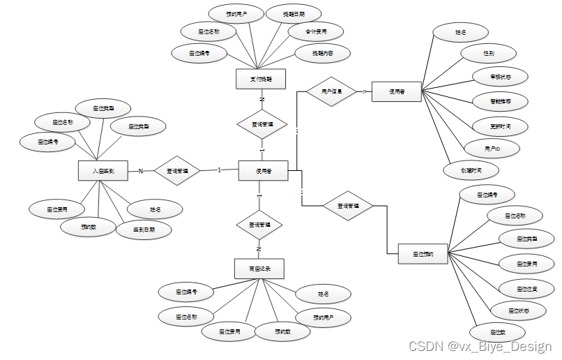下面是整个共享自习室座位管理系统中主要的数据库表总E-R实体关系图。
