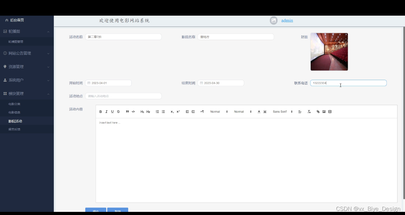 图5-10影院活动添加界面图