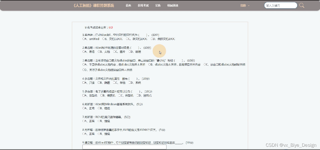 《人工智能》课程答题系统的设计与实现的设计思想如下: