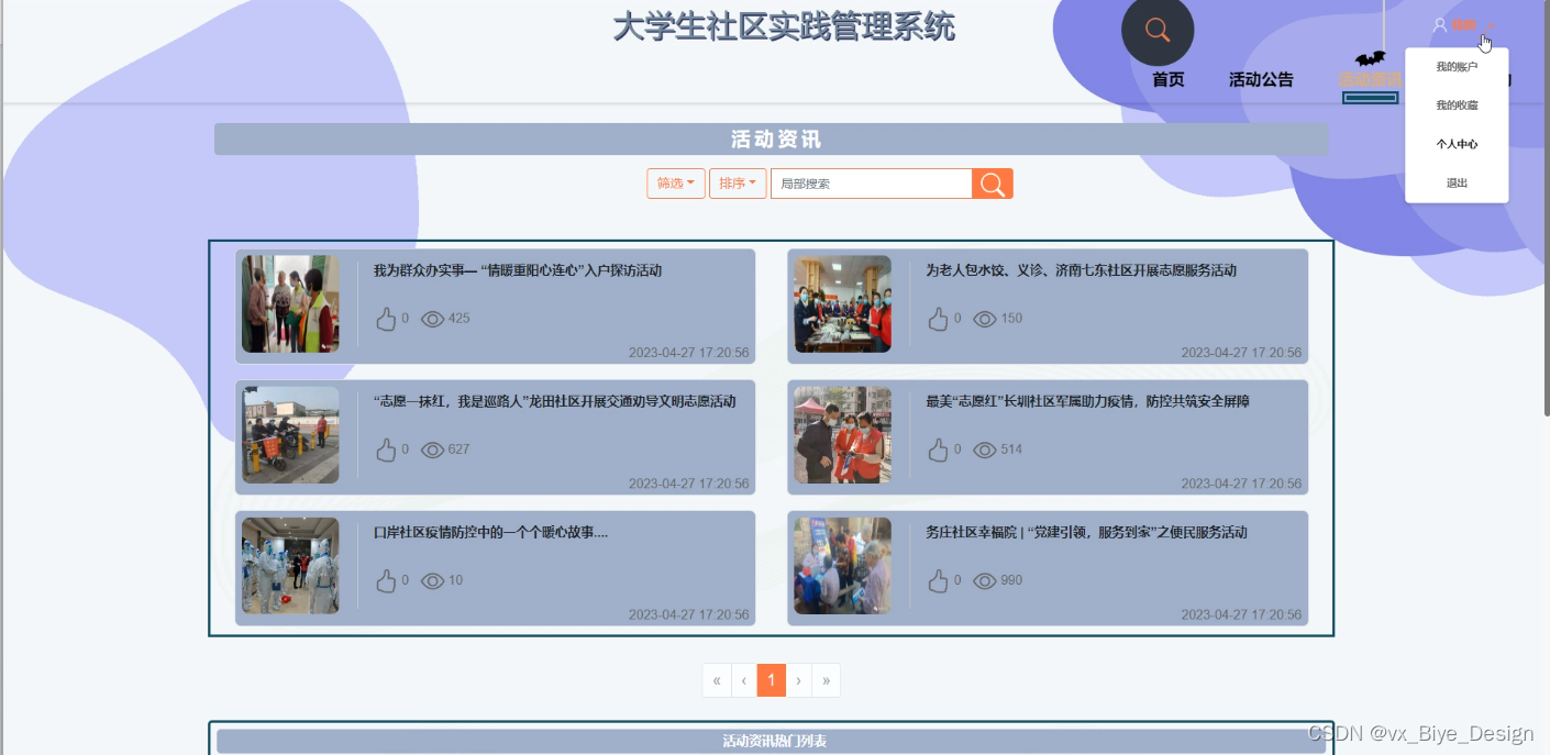 - 操作简单方便、系统界面安全良、简单明了的页面布局、方便查询大学生社区实践管理系统相关信息。