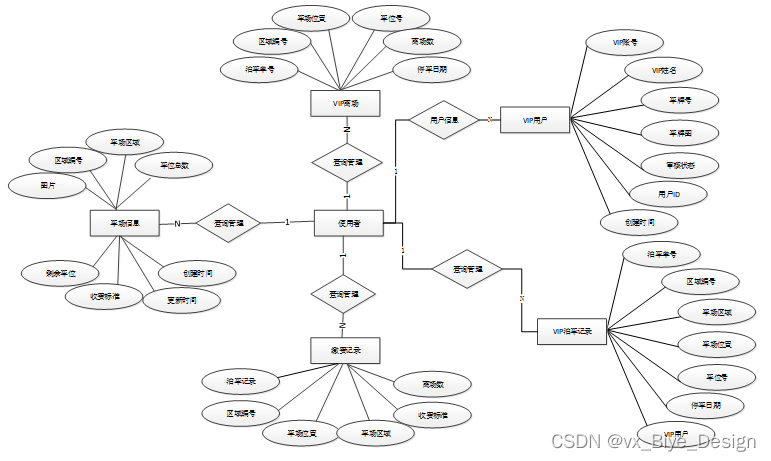 下面是整个智能停车场管理系统中主要的数据库表总E-R实体关系图。