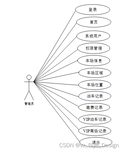 智能停车场管理系统中管理员角色用例图如图2.2所示: