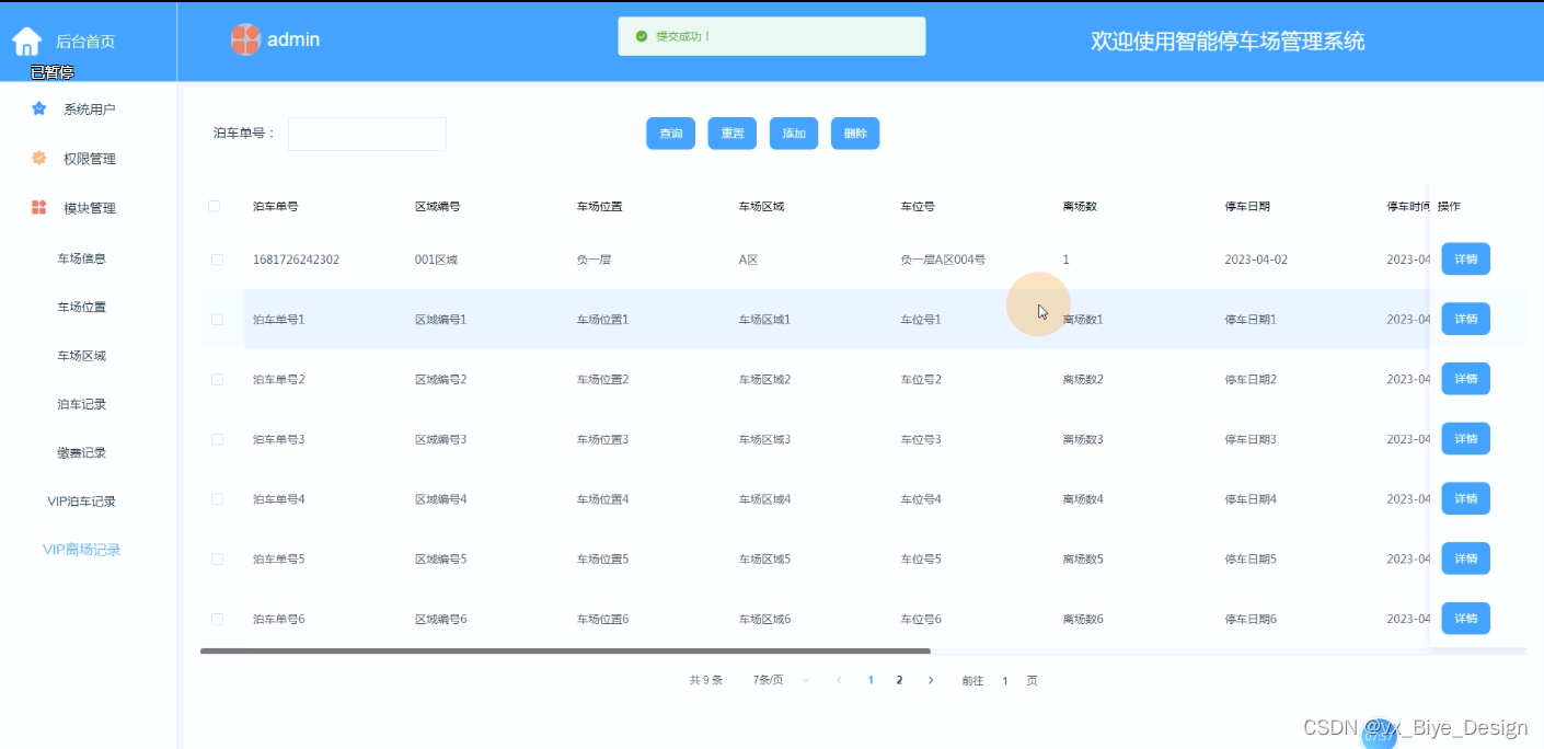 智能停车场管理系统主要功能模块包括系统用户、权限管理、车场信息、车场位置、车场区域、泊车记录、缴费记录、VIP泊车记录、VIP离场记录等,采取面对对象的开发模式进行软件的开发和硬体的架设,能很好的满足实际使用的需求,完善了对应的软体架设以及程序编码的工作,采取Mysql作为后台数据的主要存储单元,采用springboot框架、Java技术、Ajax技术进行业务系统的编码及其开发,实现了本系统的全部功能。本次报告,首先分析了研究的背景、作用、意义,为研究工作的合理性打下了基础。针对智能停车场管理系统的各项需求以及技术问题进行分析,证明了系统的必要性和技术可行性,然后对设计系统需要使用的技术软件以及设计思想做了基本的介绍,最后来实现智能停车场管理系统的部署与运行。