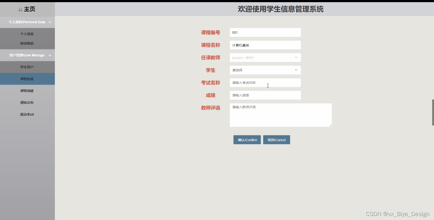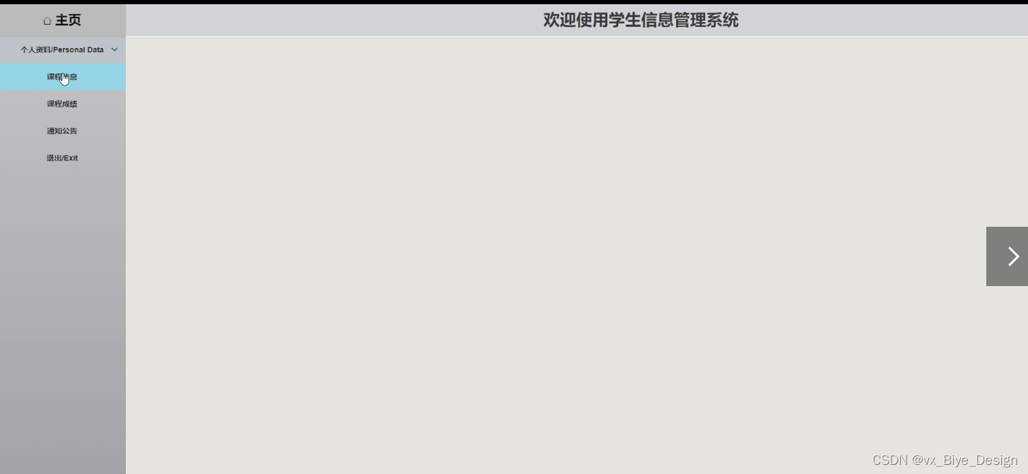 用户首页页面可以查看学生管理、课程信息、课程成绩、通知公告等信息,进行提交操作,如图5-2所示。