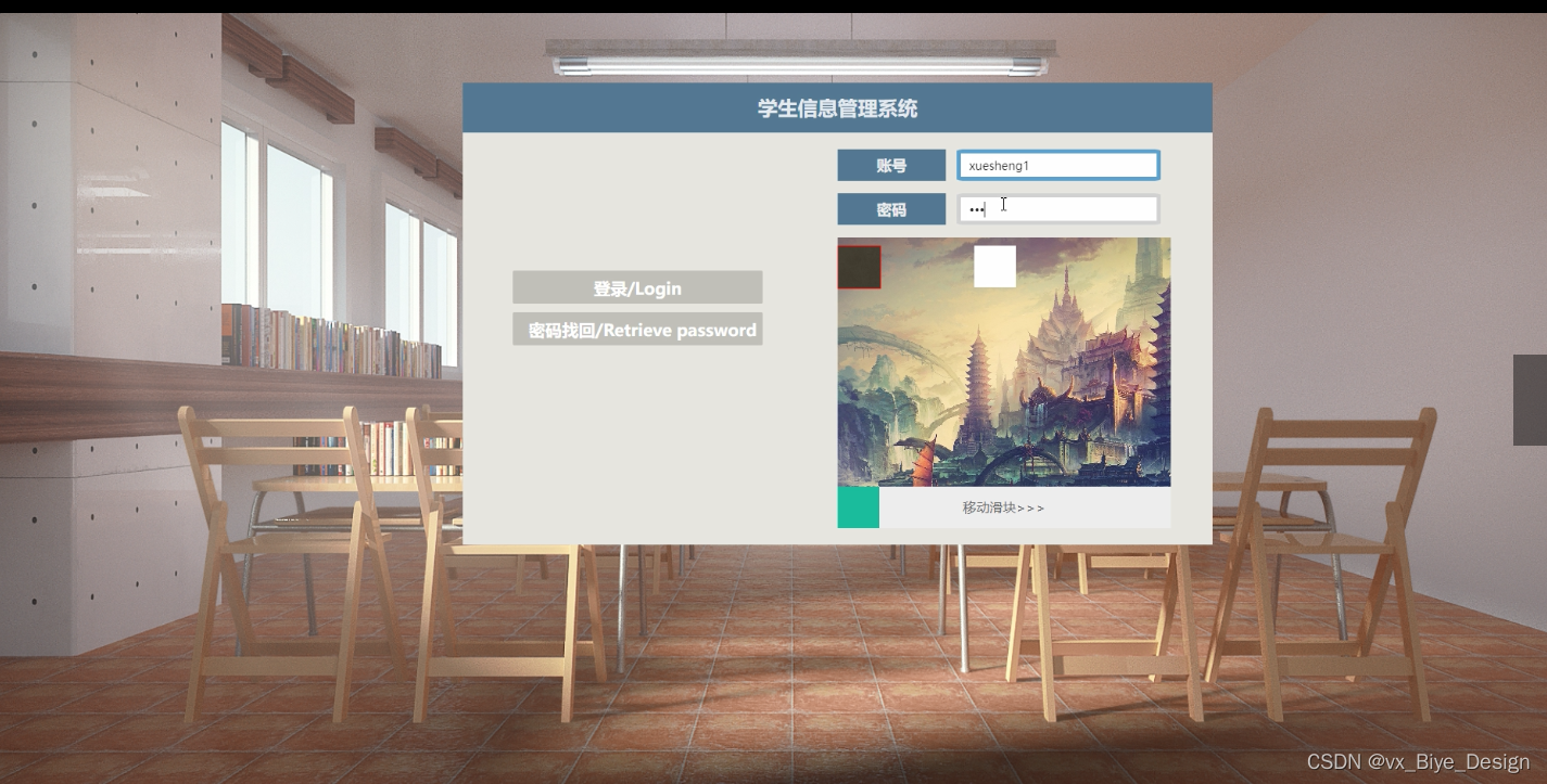 用户登录通过号、密码、登录用户类型行页面,进入到学生信息管理系统主界面,进入到操作界面,进行相对应操作,如图5-1所示。
