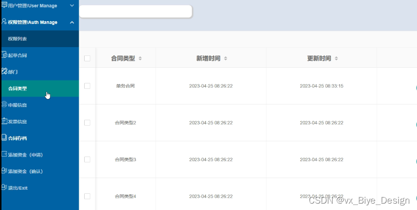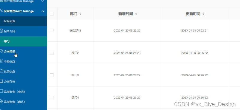 2. 系统功能还不够完善,无法提供丰富多彩的在线功能,只能实现用户管理、权限管理、部门管理、合同类型、起草合同、申报信息、发票信息等一系列功能。
