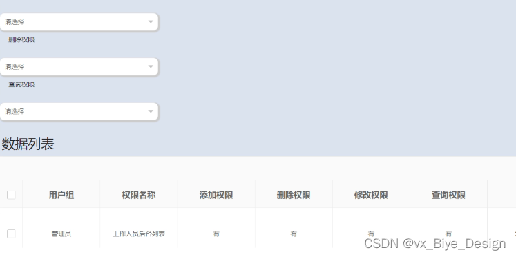 权限管理,在权限管理页面中可以查看用户组、权限名称、添加权限、删除权限、查询权限、新增时间等信息,如图5-9所示。