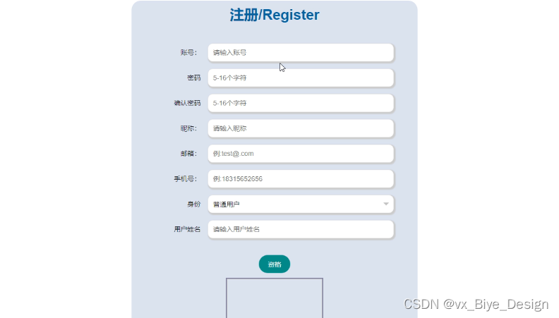 普通用户注册登录系统,通过填写注册时输入的用户名、密码、角色、验证码进行登录,注册成功的用户都需要管理员审核通过才能登录。注册如图5-4所示。