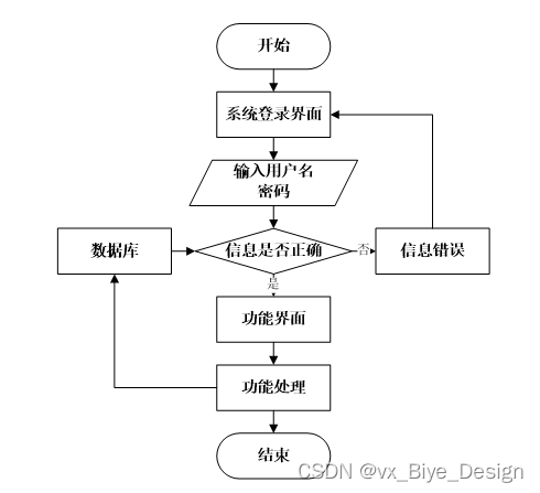 用户打开客户端并进入系统后,会先显示登录界面,输入正确的用户名和密码,系统自动检测信息,若信息无误,则用户会进入系统功能界面,进行操作,否则会提示错误无法登录,操作流程如图3-3所示。