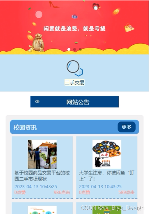 In today's rapidly developing world of information, the internet has become an important platform for people to exchange information. A large number of idle items need to be posted online every day. Therefore, I have developed an Android based campus idle item trading platform app.