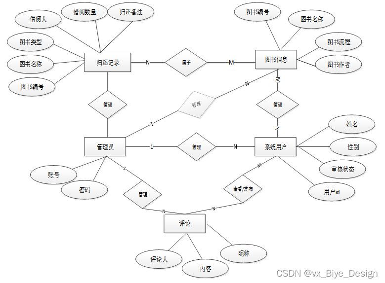 下面是整个图书管理系统中主要的数据库表总E-R实体关系图。