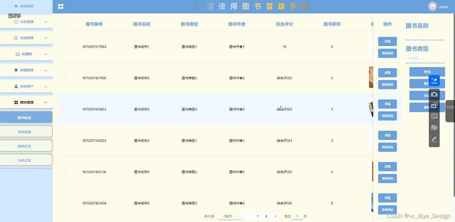 (2)图书管理系统中的web后台管理中的前端使用的是bootstrap框架,它配合ajax和jquery可以美化页面设计。