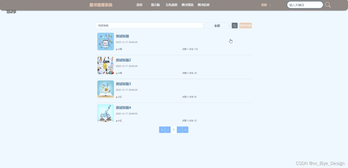 (4)留言板:用户在留言板这一菜单下对用户提交的查看、同时也可以发布、评论。