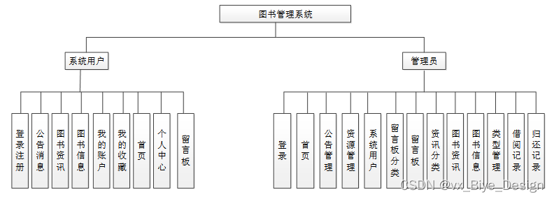 图书管理系统从角色上划分为了系统用户和管理员两种角色。