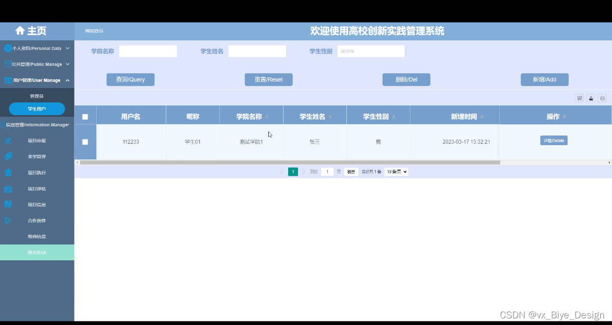 通过对功能的测试,高校创新实践管理系统的基本功能都是可行的,不管是系统里面的功能,还是界面的设计都是可值得推广宣传的。