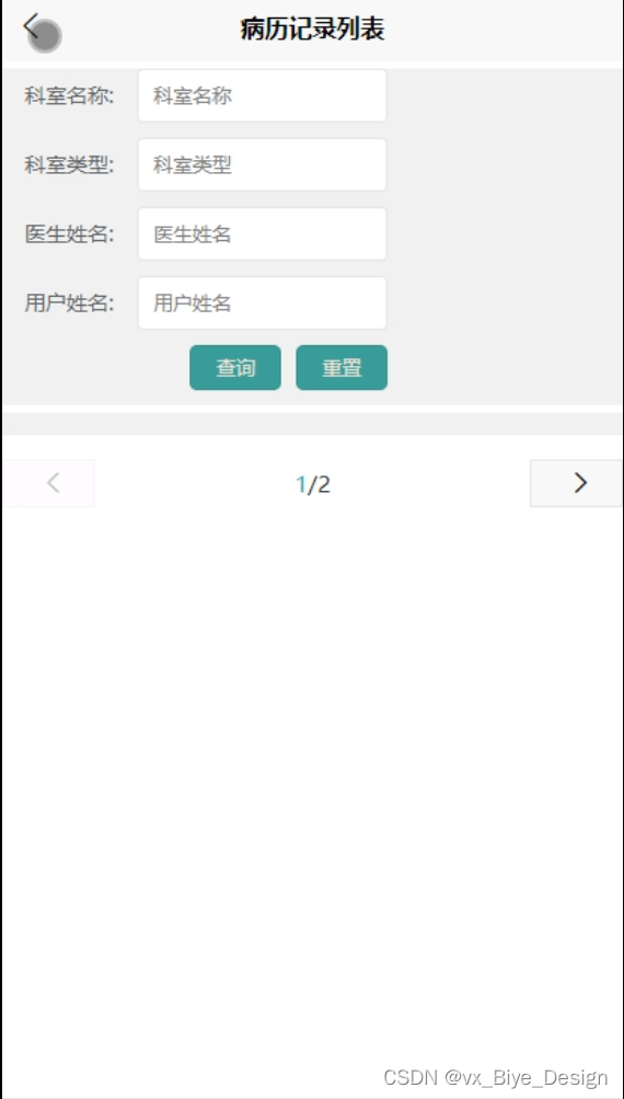 病历记录列表:通过病历记录列表可以获取索引、科室名称、科室类型、医生姓名、用户姓名等信息,进行详情或查询等操作,如图5-5所示。