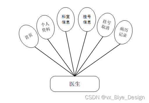 医生注册登录后可进行首页、个人资料(个人信息、修改密码)、科室信息、挂号信息、挂号取消、病历记录管理,医生用例如图3-2所示。