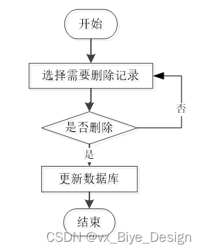 用户选择要删除的信息并单击Delete按钮。系统提示是否删除信息。如果用户想要删除信息,系统将删除信息。系统数据库删除信息。删除信息流程图如图3-6所示。