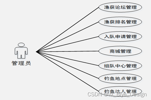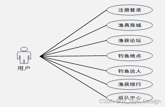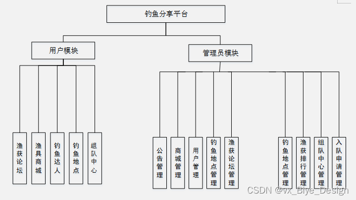 这些功能可以充分满足钓鱼分享平台的需求。此系统功能主要展示用户与管理员的功能结构,如图4-5所示。