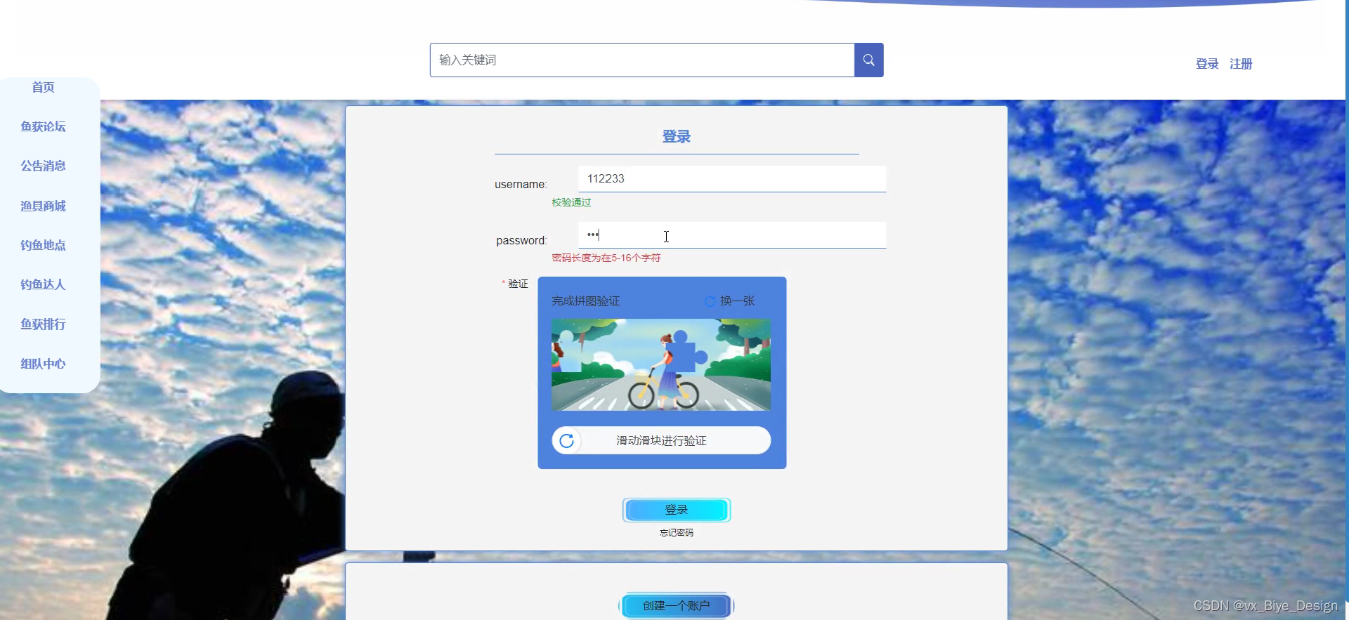 钓鱼分享平台的登录界面,通过填写账号、密码、等信息进行登录,如图5-1所示。