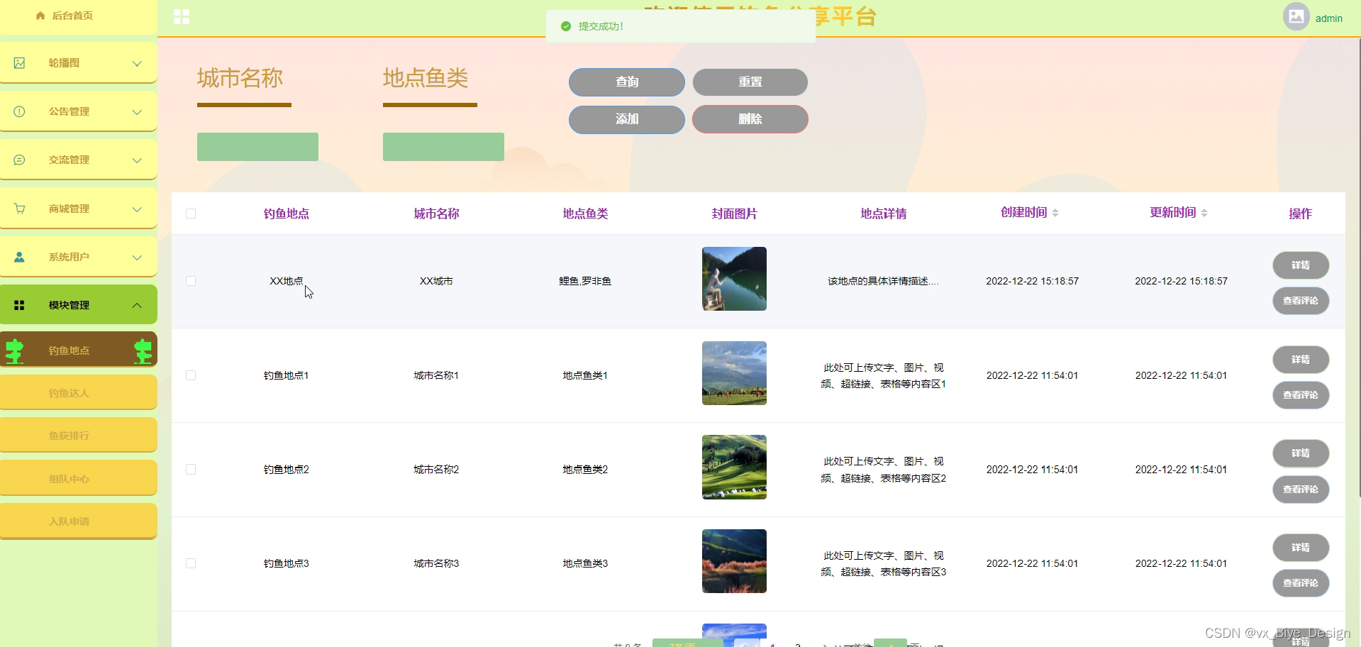 钓鱼地点管理,在此页面可以对钓鱼地点信息进行管理。如图5-10所示。