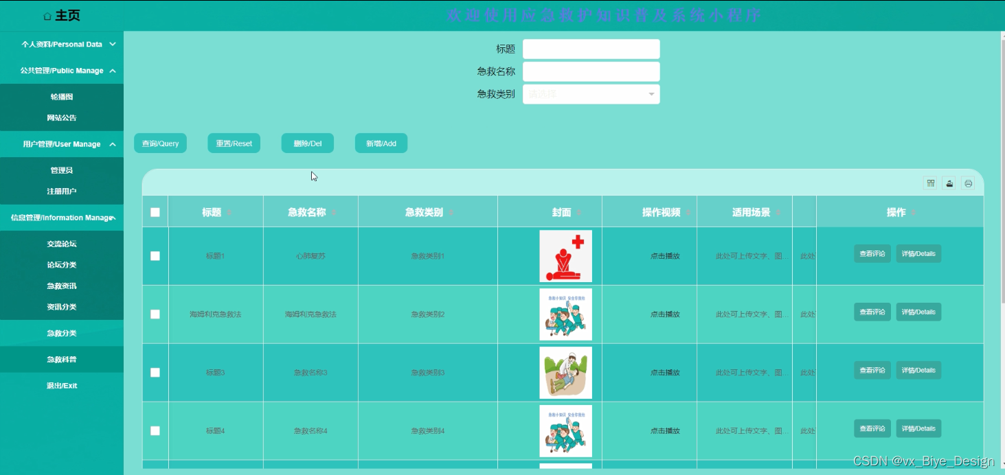 应急救护知识普及系统小程序管理系统软件是一款方便、快捷、实用的信息服务查询软件。随着智能网络在全球市场的不断普及以及各种智能平台的使用,系统的开发与人们的日常需求相关,作为中国主流智能的技术开发系统,自然需要这样的软件来满足更多用户的需求和体验。