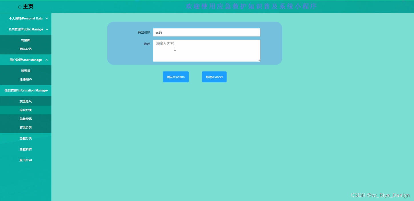 With the rapid development of China's economy, people's demand for mobile phones is increasing, and various mobile software is also widely used. However, for data information management of mobile phones, various software for mobile phones are also highly favored by users. The emergency rescue knowledge popularization system mini program is widely used by users, in order to facilitate users to easily manage the data information of the emergency rescue knowledge popularization system mini program at any time, We have developed a management system based on the emergency rescue knowledge popularization system mini program.