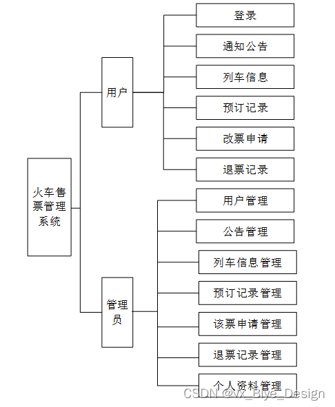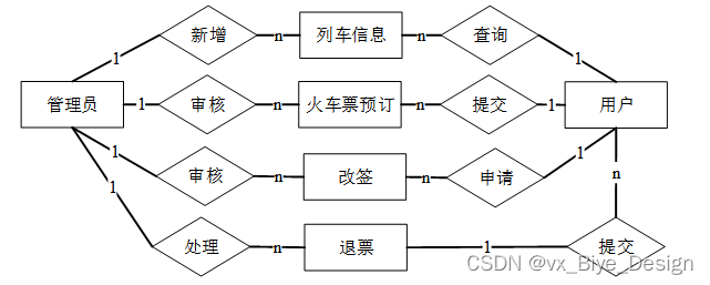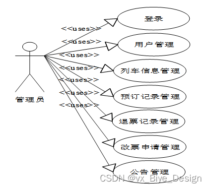 预订记录/改票申请/退票记录管理模块:火车车次管理分为预订添加、改票申请和退票操作,预订、改签、退票由用户进行提交操作;由管理员进行审核处理。