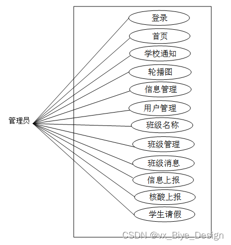 web后台管理上的管理员是维护整个校园疫情防控管理系统中所有数据信息的。管理员角色用例如图2-4所示。